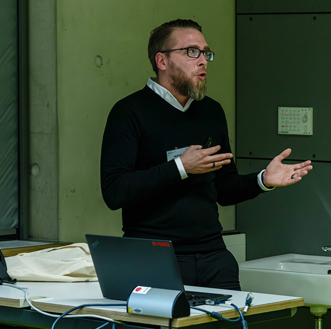 Der stellvertretende Chefredakteur der Braunschweiger Zeitung erklärt den Workshop-Teilnehmenden etwas über das Konzept Mediatime. © Ostfalia | Vakalopoulos