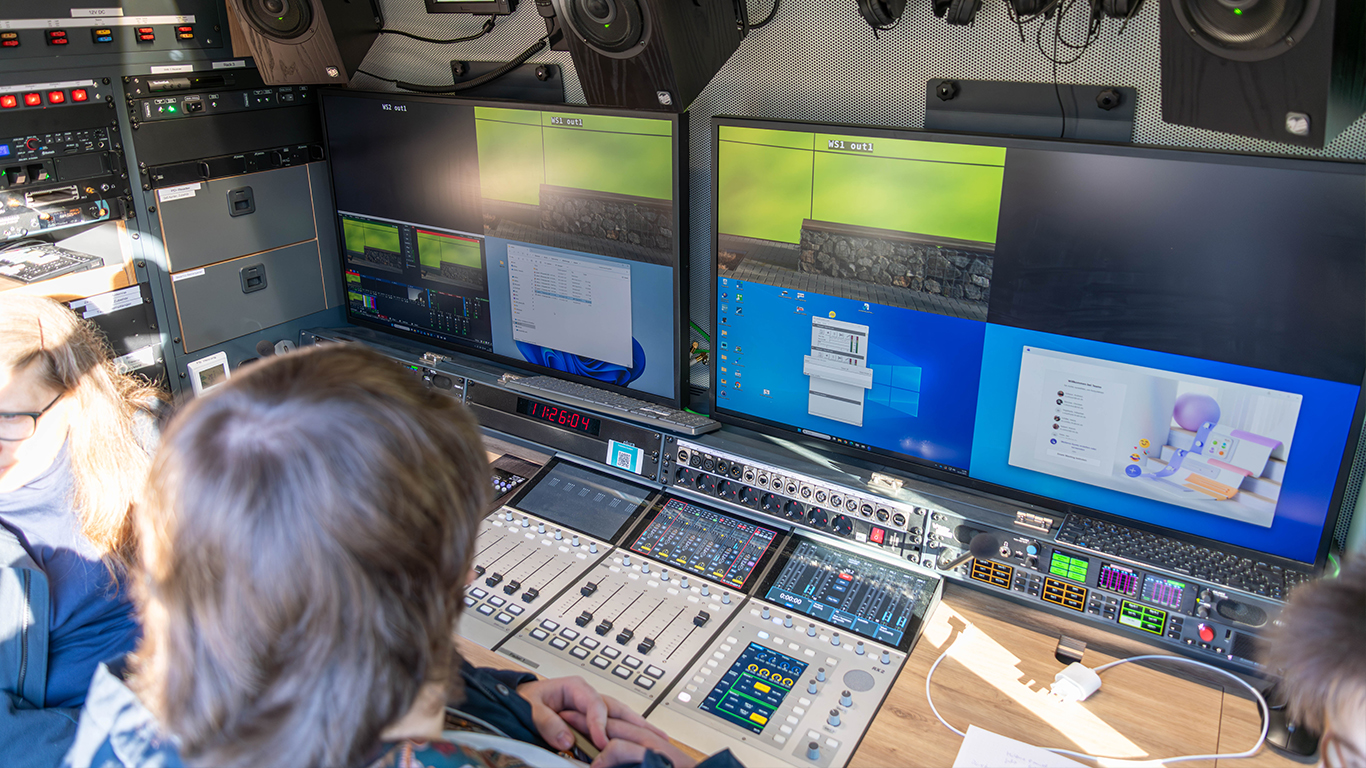 Jula Bruns: Es waren zwei Mitarbeitende vom NDR da, welche uns am Anfang des Workshops über ihre Arbeit erzählt haben. Sie haben uns auch eigene Beiträge von ihnen gezeigt und wir konnten ganz viele Fragen stellen. Im zweiten Teil sind wir dann zu der Praxis übergegangen. Die hatten draußen einen Übertragungswagen – auch Ü-Wagen genannt – stehen und mit dem konnten wir eine Live-Schaltung selber durchführen.